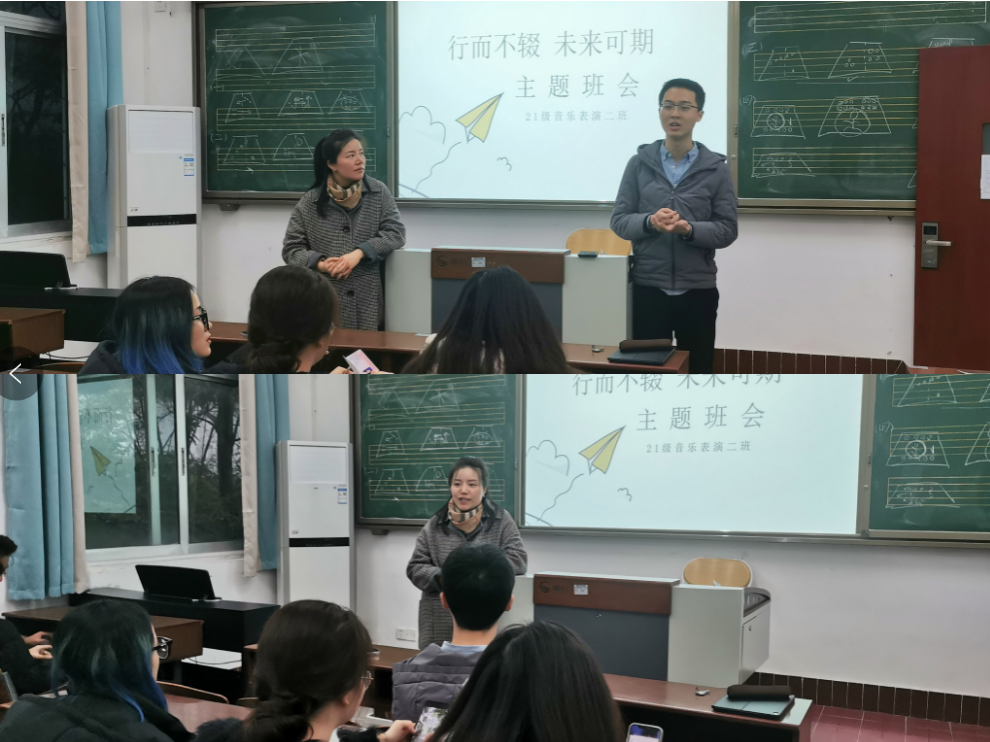 为帮助同学们增强职业生涯规划意识,提高就业能力,为未来的实习和就业打好基础,12月11日,bevictor1946韦德官网2021级音乐表演2班在16教228教室开展“行而不辍,未来可期”主题班会。本次班会由班长林硕辰主持,班主任舒怡老师、辅导员黄垭飞老师及全体同学参加。