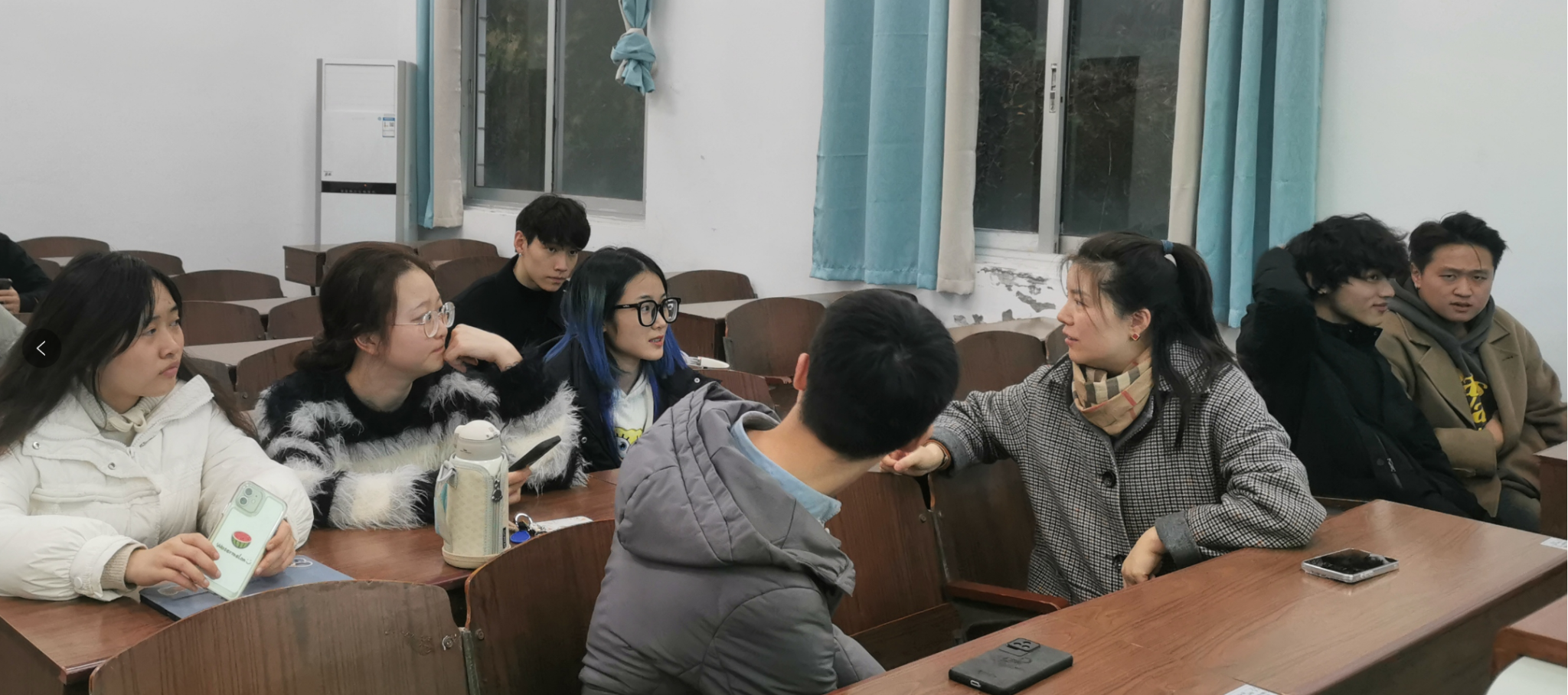 在自由交流环节,舒怡老师、黄垭飞老师与每位同学分别进行了就业意向和就业准备的交流,分享了经验和建议,给予了鼓励和指导。