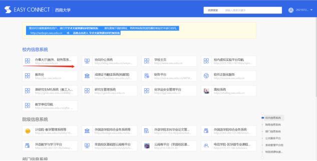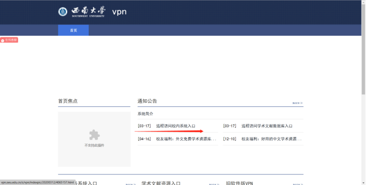 1.登录西大vpn,点击“远程访问校内系统入口”→远程访问校内网信息系统入口